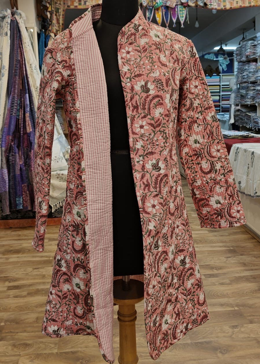 Quilted Reversible Jacket | Pink Garden Stripes - The Kemble Shop