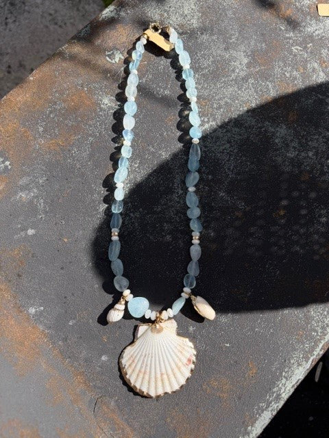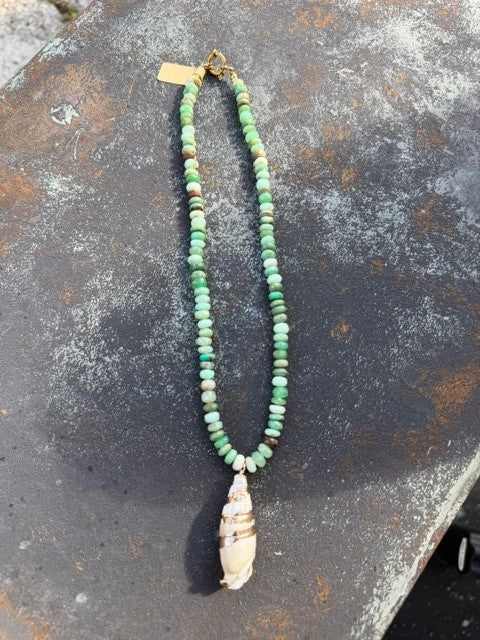 These beautiful rondelle stone beaded necklaces come in 3 beautiful colors, each featuring it's own unique and one of a kind, natural scallop shell.